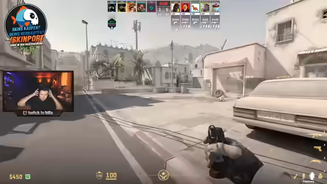 03:03:43Es wird ein FaceIT-Jahresrückblick (Jahresreplik) diskutiert, der auf dem Container präsentiert wird. Der Streamer lobt die Umsetzung des Jahresrückblicks und erwähnt die Positionierung auf dem Container. Gleichzeitig plant das Team die nächste Runde mit einer Taktik, die das Halten von Positionen wie 'Pop und Com' sowie den Einsatz von Smokes (Sandwich-Smokes) beinhaltet. Es folgt eine detaillierte Absprache über den Einsatz von Flashes und das Vorgehen gegen Gegner in bestimmten Map-Bereichen.