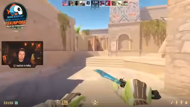 01:40:46Der Streamer äußert starke Präferenzen für bestimmte Skins und Waffen im Spiel. Er bevorzugt den Bowie Blue Steel gegenüber dem Bio Forest Didi Pet und begründet dies mit seinem Spielstil im 16:9 Format. Dabei äußert er eine deutliche Abneigung gegen das normale Bayonett, dessen Animationen er als hässlich und schlecht bezeichnet. Stattdessen würde er eher ein Flipknife spielen, das er für besser hält, als kein Bayonett zu verwenden.