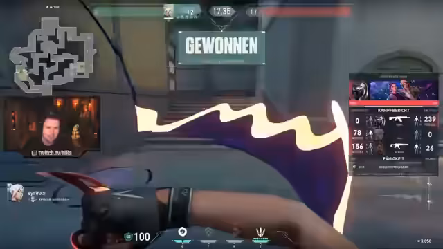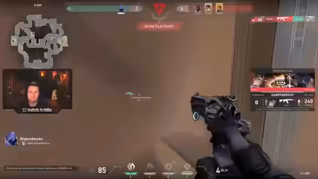 00:09:50Während des Spiels kämpft der Streamer mit den Spielmechaniken von Valorant. Er kritisiert das Spray-Verhalten, das er als unzuverlässig im Vergleich zu CS: empfindet, und fühlt sich durch One-Taps aus unübersichtlichen Winkeln überfordert. Trotzdem gibt es Momente, in denen er das Spiel als spannend empfindet, insbesondere bei der Nutzung von Agenten-Fähigkeiten und der Analyse von taktischen Zügen wie Rauchbomben-Platzierungen.