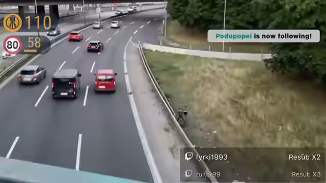 00:01:02Das Motto des heutigen Streams ist 'Autobahn', was durch die hohen Geschwindigkeiten und die damit verbundene Blitzfrequenz unterstrichen wird. Die Stimmung ist feuchtfröhlich und von hektischem Arbeitsgeprägt, da das Team permanent auf Blitzer achten und den Zähler am Laufen halten muss. Die Zuschauer werden mit eingebunden, indem sie zur Abstimmung über Teams ('Stern' für Elektro, 'Herz' für Verbrenner) aufgerufen werden.