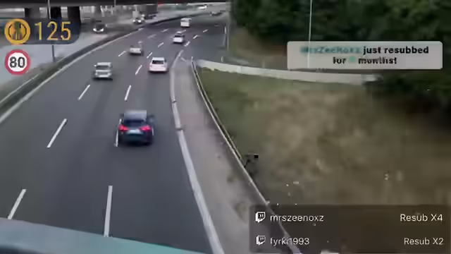 01:21:45Es werden die aktuellen Blitz-Ergebnisse präsentiert und bewundert. Ein spezieller "Quadruple", also vier Blitze hintereinander, wird gefeiert. Die erlaubte Höchstgeschwindigkeit von 80 km/h wird erwähnt, ebenso wie die Tatsache, dass auch Geschwindigkeiten darüber geblitzt werden. Die Namen der geblitzten Hersteller, wie Audi und BMW, fallen häufig, und der Streamer zeigt sich beeindruckt von den gemessenen Geschwindigkeiten von über 110 km/h.