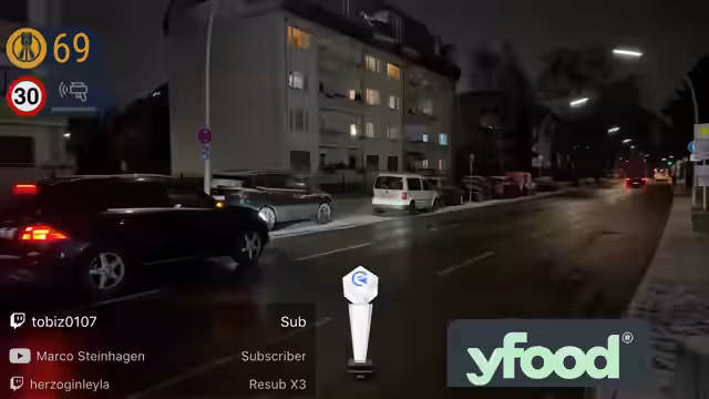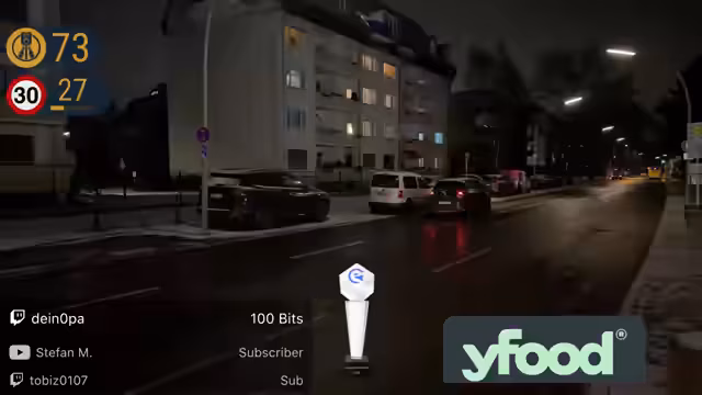 00:20:27Das Setup wird dahingehend optimiert, dass auf ein Tablet für den Chat gewechselt wird, um die Interaktion zu verbessern und den Umgang mit Handys zu reduzieren. Ein Fahrer, der nicht auf die Schilder geachtet hat, wird verdeckt geblitzt. Der Streamer wünscht der Community einen schönen Fasching und präsentiert seinen Sponsor YFoot, der mit dem Codewort 'Bier' Rabatte anbietet. Es werden Witze über die Schreibweise des Namens Philipp geteilt.
