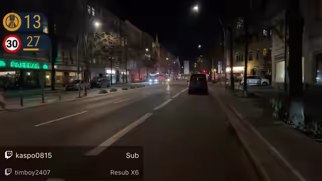 00:04:19Ein Raid durch den Kanal 'Just Jenny Official' wird begrüßt. Der Streamer erklärt, dass die ersten vier Minuten und zwei geblitzte Fahrzeuge verpasst wurden. Es folgen weitere Blitzerdokumentationen, darunter ein dunkler Caddy und ein Transporter. Technische Probleme mit der TikTok-App werden thematisiert, während auf die Vorteile des Twitch-Streams mit Querformat, Geschwindigkeitsanzeige und Counter hingewiesen wird. Die Begrüßung wird mit dem Hinweis auf den Kanal 'Bier und Blitzer' auf Twitch abgerundet.