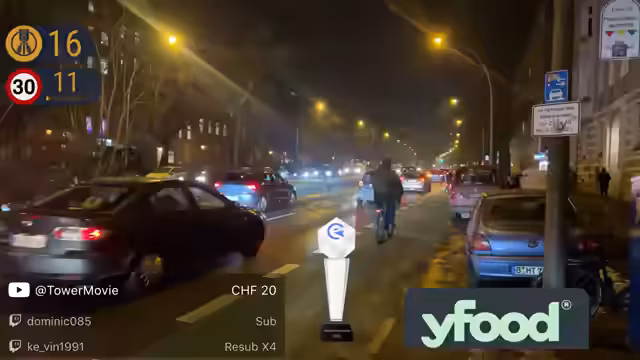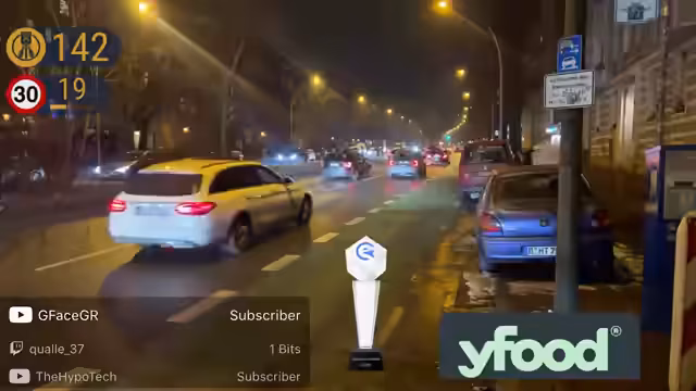 00:02:02Die ersten Fahrer werden geblitzt, darunter Nummer drei und fünf, wobei ein Radfahrer knapp einer Kontrolle entgeht. Es kommt zu einer angespannten Situation, als ein dunkler Transporter ohne Kennzeichen gesichtet wird. Der Streamer appelliert an die Zuschauer, die Positionen nicht zu preiszugeben, und kündigt an, dass für jeden hundertsten Blitz ein gemeinsamer Stoss getrunken wird.