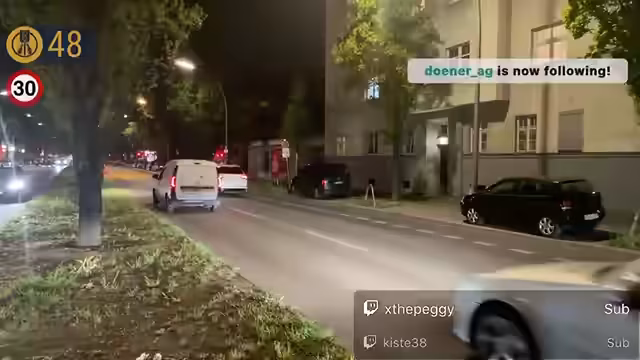 00:15:39Ein besonders auffälliger Blitzer-Fall ereignet sich, bei dem ein dunkler Transporter extrem schnell fährt und stark abbremsst. Dieser Vorgang gilt als Highlight des Abends. Ein weiteres Highlight ist ein Fahrradfahrer ohne Licht, der knapp am Blitzer vorbeifährt. Diese Szene wird humorvoll als "Organspender" bezeichnet. Die Viewerzahl steigt auf über 3.000, und ein Raid von "El Capitano" bringt neue Zuschauer ins Stream.