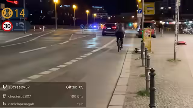 00:06:59Nach einer kurzen Phase der Unklarheit wechselt der Streamer den Standort. Er ist nun in Bochum und zeigt klassische Berliner Taxis und den allgemeinen Verkehr. Der Chat interaktiv stark beteiligt, wird eine Abstimmung gestartet, ob 30 oder 50 km/h gebilzt werden. Der Streamer unterhält sich über fehlende Schokis, den Einsatz von Mods und erwähnt einen möglichen Raid auf einen anderen Kanal. Die Stimmung ist geprägt von direkter Ansprache der Community und gemeinsamen Aktionen.
