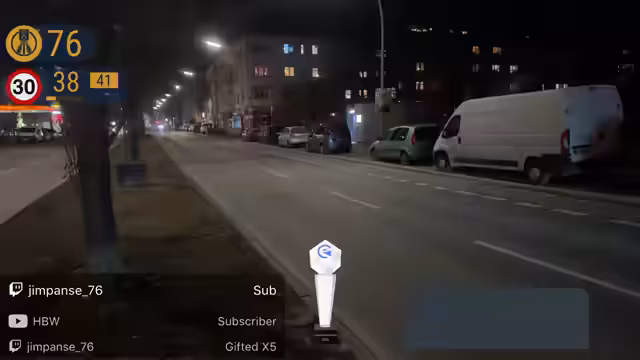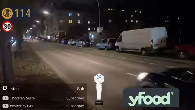 02:20:42Der Stream erreicht einen Höhepunkt mit dem Erreichen von 100 Blitzern und einer spannenden Abstimmung, ob der folgende Fahrer bremst oder nicht. Ein Fahrzeug, ein Kombi, hält nach dem Blitz an, während ein anderes den Versuch eines Blitzes umfährt. Es kommt zu einer zufälligen Beobachtung eines französischsprachigen Streits, der unterbrochen wird, und die Interaktion mit den Zuschauern bleibt intensiv, mit Kommentaren über das Wetter und persönliche Bemerkungen, wie das Altern des Streamers.