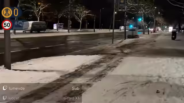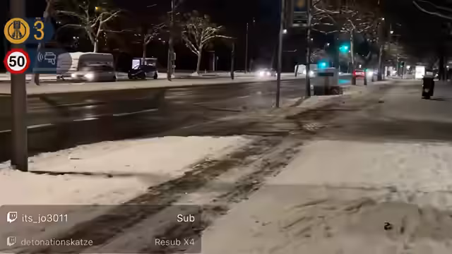 00:28:00Aufgrund der winterlichen Verhältnisse – es ist glatt und schneit – wird ein Schneeball-Duell zwischen Streamer und Co-Host inszeniert. Es gibt lustige Wortspiele und der Streamer fordert den Co-Host auf, ihn umzustoßen. Währenddessen kommt es zu einem Vorfall, bei dem ein Auto mit 57 km/h geblitzt wird. Die Streamer kommentieren das Ereignis live und ermutigen die Zuschauer, ihre eigenen Silvester-Erlebnisse zu teilen. Die Kälte ist ein ständiges Thema, wobei der Streamer betont, dass sie trotz allem draußen bleiben.