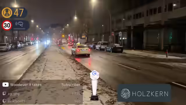 00:01:59Die Hauptaktivität des Streams besteht im Beobachten von Blitzaktionen in Berlin. Innerhalb kurzer Zeit werden zahlreiche Verkehrsteilnehmer geblitzt, was zu aufgeregten Reaktionen im Chat führt. Die Community interagiert stark und tippt per Abstimmung in TikTok voraus, welches Fahrzeug als Nächstes geblitzt wird. Die Speedchecks erfolgen per TechMask und einem angeblich gehackten Starlink-Satelliten, der die Geschwindigkeit grob misst und für leichte Abweichungen sorgen kann.