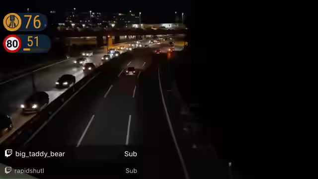 01:10:44Nach einer leichten Beruhigung der Situation geht die intensive Blitzerphase weiter. Der Streamer gibt bekannt, dass der Stream bis mindestens 21 Uhr weiterlaufen soll und danach eine Verlängerung bis 21:30 Uhr möglich ist. Eine Wette mit dem Chat läuft darauf hinaus, ob bis 21 Uhr die Marke von 200 geblitzten Fahrzeugen erreicht wird. Die Statistik spricht dabei für die Chat-Community, da die Quote an geblitzten Fahrzeugen sehr hoch ist.
