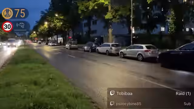 00:08:20Die ersten Geschwindigkeitsübertretungen werden erfasst. Ein Fahrzeug wird mit circa 42 km/h in einer 30er-Zone geblitzt. Der Streamer zählt die geblitzten Fahrzeuge manuell und schafft es, mehrere Verstöße festzuhalten, während gleichzeitig der Verkehr durch nasse Straßen und bekannte Kontrollpunkte gebremst wird. Es wird ein Fahrzeug mit 68 km/h gemessen, was als Top Speed für diesen Stream gilt. Die Zählung der geblitzten Fahrzeuge steigt kontinuierlich an und wird von den Zuschuchern mitverfolgt.