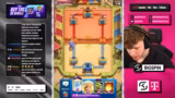 03:12:14Der Streamer kämpft sich auf 8-1 heran und braucht nur noch zwei weitere Siege, um die Challenge zu meistern. Gegen einen starken Gegner namens Z hat er ein Deck mit Lock, Zappies, Dark Prince und Inferno, das als extrem geil angesehen wird. Das Spiel verlägt spannend, aber der Streamer nutzt seine Karten wie die Seppies und den MK, um den Gegner zu bezwingen und auf 9 Siege zu kommen.