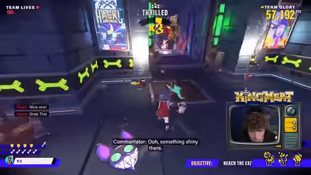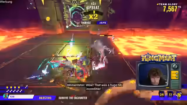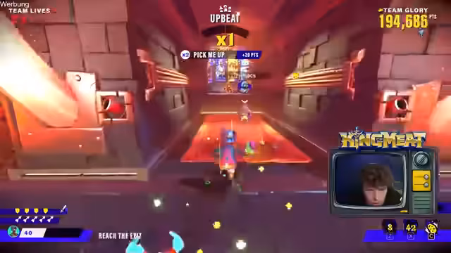 03:08:40Nach einer Pause beginnen sie eine neue Runde in der Parcours-Map, mit Fokus auf schnelles Vorankommen und Vermeidung von Tod. Sie treten auf Bugs, wie nicht funktionierende Heilung oder Spezialangriffe, die das Gameplay beeinträchtigen. Trotzdem sammeln sie Punkte durch das Aufschlagen von Kisten und das Einsammeln von Gegenständen. Die Spieler diskutieren die Punkte-Verzögerung und planen, mehrmals dieselbe Map zu spielen, um die Mechanik zu meistern und den Multiplier hochzuhalten. Am Ende versuchen sie, den Boss zu besiegen, während sie mit Zeitdruck und weiteren Bugs kämpfen.