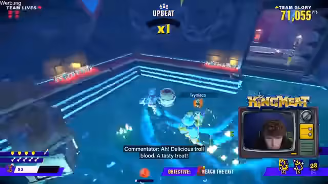 00:00:00Der Stream beginnt mit der Vorbereitung auf das Spiel 'King of Meat'. Die Teilnehmer – Trymacs, Rumathra und Repazkom – sind vor Ort und klären technische Einstellungen, insbesondere Audio-Probleme. Sie erwähnen, dass im Hintergrund acht weitere Personen anwesend sind, was zu einer lauten Umgebung führt. Das Spiel 'King of Meat' wird als ein Dungeon-Spiel vorgestellt, das verschiedene Modi wie Jump and Run, Hack and Slay und Rätsel beinhaltet und für bis zu vier Spieler ausgelegt ist. Es gibt offizielle Dungeons von der Community, und die Teilnehmer bereiten sich auf eine kooperative Session vor.