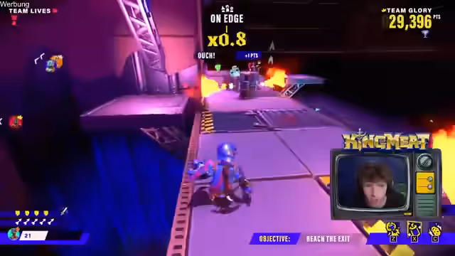 00:06:00Nachdem die anfänglichen technischen Hürden genommen sind, beginnt eine Erklärung des Spielprinzips von King of Meat. Es wird als ein Dungeon-Game beschrieben, das Elemente von Hack and Slay, Jump and Run und Rätsel vereint. Die Teilnehmer spielen in Teams von vier gegen vier und müssen Dungeons so schnell wie möglich absolvieren, um Punkte zu sammeln. Wichtigste Mechaniken sind der Rülpser als Flächenschaden, das Werfen von Heiltränken und die Nutzung von Ultimate-Fähigkeiten, die mit R gedrückt gehalten werden können. Es wird betont, dass die Community eigene Dungeons erstellen kann und das Spiel stark von dieser Kreativität lebt.