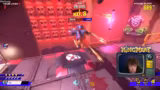 01:54:06Die Teilnehmer konzentrieren sich auf das Besiegen von Dopple-Bossen, wobei eine zentrale Mechanik das 'Hot Potato'-Item ist. Dieses Granaten-artige Objekt muss rasch zwischen den Teammitgliedern weitergeworfen werden, bis es sich zu einer explodierenden Bombe entwickelt. Die Kommunikation ist entscheidend, um den richtigen Moment zum Weiterwerfen zu finden und die Explosion beim Gegner statt bei sich selbst auszulösen, wobei große Fässer als zusätzlicher Schaden dienen.