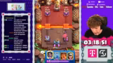 01:03:51Das Copy-Deck-Format beginnt mit dem Ziel, bis in die Top 100 oder Top 200 der Welt zu kommen. Das erste Deck ist ein Lockbait-Deck, gegen das der Streamer zunächst massive Probleme hat und das Match 'katastrophal' nennt. Die erste Niederlage wird jedoch durch einen Sieg mit einem Mortar-Deck ausgeglichen. Die folgenden Spiele zeigen ein Wechselspiel aus Siegen und Niederlagen, wobei der Streamer matchups wie Triple Spell-Decks und Ballon-Decks als sehr herausfordernd und teilweise 'gottlos' empfindet.