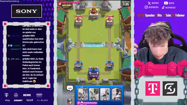 00:58:11Der Streamer setzt sein Clash Royale-Spiel fort und äußert seine Unzufriedenheit über die erhaltenen Karten, insbesondere die Minion-Horde. Er betont, dass er etwas gegen den Prinzen des Gegners benötigt und wünscht sich Rascals oder Skarmy. Er kritisiert Supercell für die Kartenverteilung und äußert den Wunsch nach einem Supercell-Mitarbeiter, der ihm bei Account-Problemen helfen könnte. Er hadert mit seinen Karten, besonders mit dem Goblin Giant und Sparky, und bezeichnet sein Deck als chaotisch. Er wünscht sich den Holzfäller oder Skarmy, um besser gegen den Prinzen bestehen zu können. Er spielt Sparky und Goblin Giant, was aber nicht zum gewünschten Erfolg führt. Er setzt auf den Lava-Hund und die Archer Queen, um Schaden zu verursachen, und hofft, dass der Gegner seinen Bomb Tower nicht effektiv einsetzen kann. Trotz einiger guter Spielzüge und Damage am Turm des Gegners bleibt das Spiel schwierig. Er gewinnt die Runde und freut sich über den Erfolg. Er startet das nächste Spiel und hofft auf einen weiteren Sieg, um seine Serie fortzusetzen.