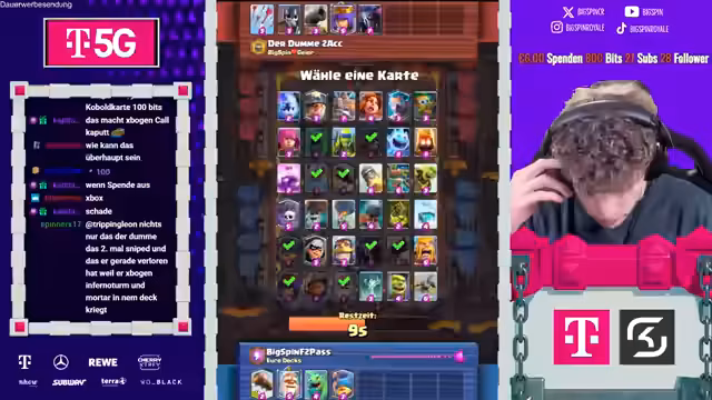 00:35:12Der Streamer erklärt, dass er den Dummen wegrasieren musste und steht nun bei 5:0, da er gegen Snipers keine Karten wählt. Er analysiert die Kartenwahl und Strategien im nächsten Spiel. Er äußert Frustration über die Karten, die er erhält, insbesondere drei Gebäude, und kritisiert die Entscheidungen des Gegners. Trotz seiner Bemühungen verliert er das Spiel und scheidet bei fünf Siegen aus. Er äußert seinen Unmut über den Verlust und die erhaltenen Karten.