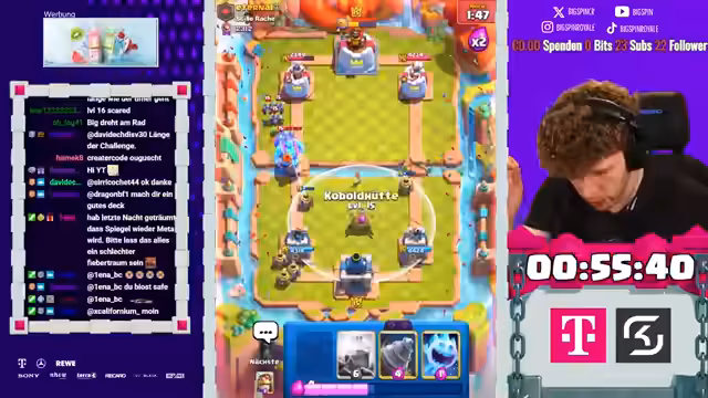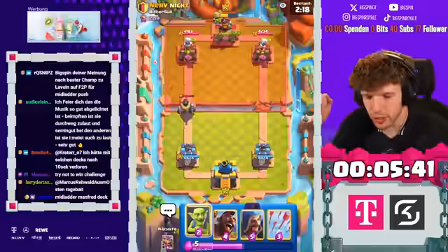 In Clash Royale startet eine Deckbau-Challenge mit Supercell-Feature. Der Streamer erstellt Decks, spielt Ladder-Spiele und passt Strategien an. Trotz anfänglicher Erfolge folgen Pechsträhnen und Frustration aufgrund zufälliger Kartenauswahlen. Anpassungen und Analysen prägen den Spielverlauf, wobei der Fokus auf unerwarteten Wendungen und Deck-Zusammenstellungen liegt. Ein experimentelles Spiegeldeck wird getestet.