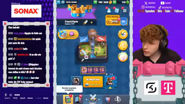 00:08:55Nach dem Start des Spiels wird das Deck für die erste Runde ausgewählt, wobei die Strategie darauf abzielt, Kronen zu farmen. Es folgen mehrere Spiele mit unterschiedlichen Gegnern. In einem Spiel wird nach technischen Problemen ein Sieg erzielt, was als positive Bestätigung für die Qualitätssteigerung seit der Pause gewertet wird. Der Streamer prognostiziert zudem einen Fünf-Bow-Drop als Dank an die treue Community, die seit dem Streamstart aktiv bleibt.