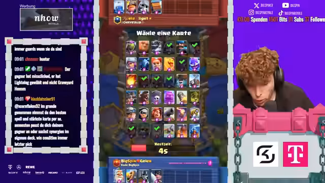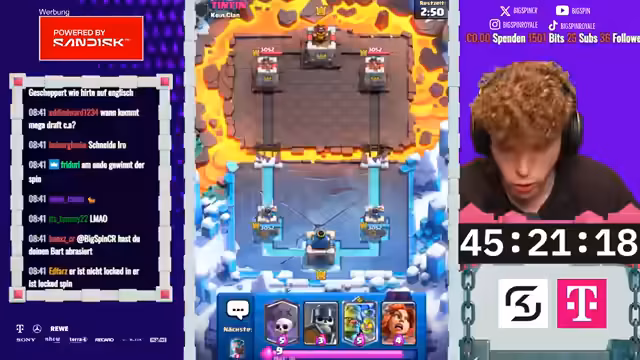 02:10:58Der Streamer enfrentiert Herausforderungen bei der Kartenwahl und Strategieanpassung. Er bemerkt, dass er schlecht gedraftet hat und die einfache Wahrheit ist, dass er den Ballon nicht hätte wählen sollen. Die Diskussion zeigt, dass Lightning in vielen Fällen nicht nützlich war und er versucht, über seinen Mönch zu gewinnen. Es wird über Gegner wie 'der Dumme' und andere Spieler wie Kai gesprochen, die mit Mighty Miner exzellent sind. Der Streamer analysiert seine Entscheidungen, reflektiert über fehlende Win Conditions und die Notwendigkeit, durch Skill zu gewinnen. Technische Probleme werden kurz erwähnt, aber gemäß Anleitung ignoriert. Es folgen weitere Spielanalysen, in denen er Karten wie Valkyrie, Dark Prince und Cannon Cart bewertet. Der Streamer beklagt sich über seine Entscheidungen, etwa das Verpassen von wichtigen Picks, und versucht, seine Chancen in zukünftigen Spielen zu steigern, indem er seine Draft-Strategie überdenkt.