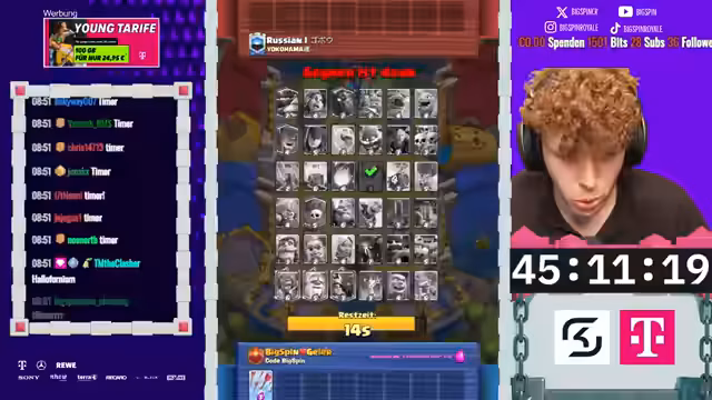 00:45:18Nach Abschluss der aktuellen Challenge plant der Streamer, auf dem Main-Account in die Mega-Auswahl zu wechseln, um Platz 1 zu pushen. Es wird die Notwendigkeit betont, innerhalb von 13 Stunden 240 Kronen zu sammeln, um das Clan-Ziel von 4.800 zu erreichen. Zudem wird der aktuelle Status des Accounts erwähnt (früher Platz 6 der Welt, jetzt auf Rang 2500) und die Motivation bekundet, durch gezieltes Grinden in der Mega-Auswahl eine neue Bestleistung zu erzielen.