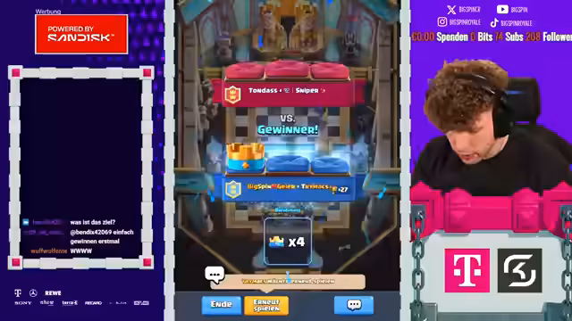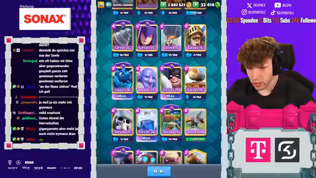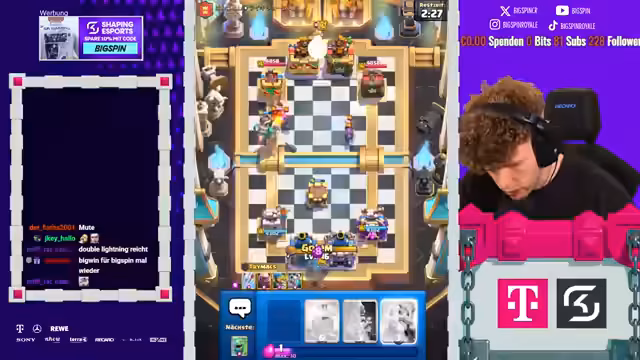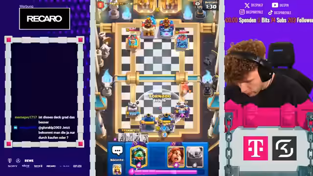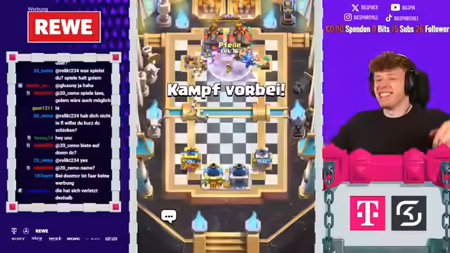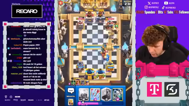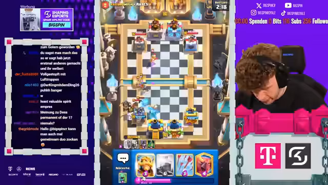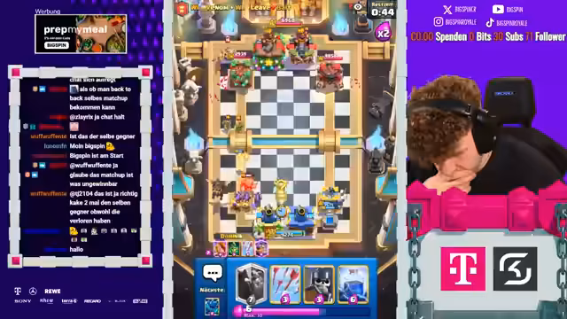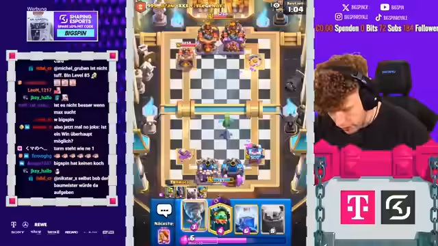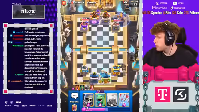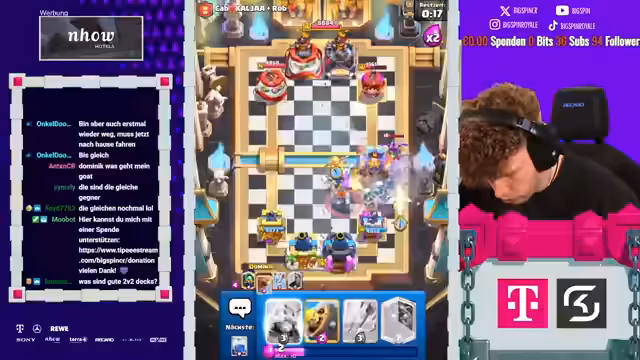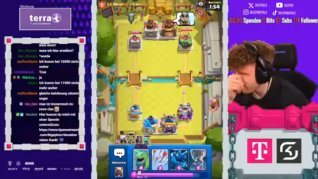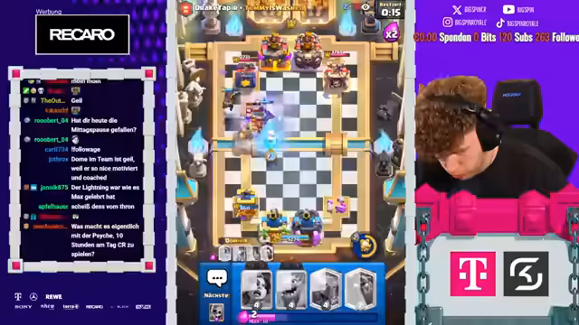 02:00:00Nach einer Phase voller spannender Matches klettert das Team konstant in der Rangliste. Sie erreichen Platz 38 der Welt und feiern diesen Meilenstein mit viel Enthusiasmus. Der Fokus liegt auf der Anpassung an verschiedene Deck-Gegner, insbesondere gegen Bait-Decks mit Doppelraketen. Innovative Strategien wie der Einsatz von E-Dragons und Minions für den Druck werden diskutiert. Ein Höhepunkt ist der Sieg gegen ein Top-10-Team, der sie auf Platz 23 katapultiert. Die Kommunikation mit Dominik bleibt entscheidend für koordinierte Angriffe und Defense.