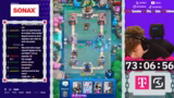 01:10:20Nach einer Siegesserie erreicht der Streamer mit Leichtigkeit die 6.000 Trophäen. Der Fokus liegt weiterhin klar auf dem Ziel von 7.000 Trophäen, um den Gratis-Pass aufzuwerten. Obwohl er die Schwierigkeit bei 8.500 Trophäen als hoch einschätzt, ist er zuversichtlich, dass das Ziel mit den erreichten Levels und dem gegenwärtigen Deck machbar ist.
