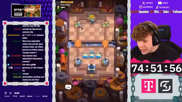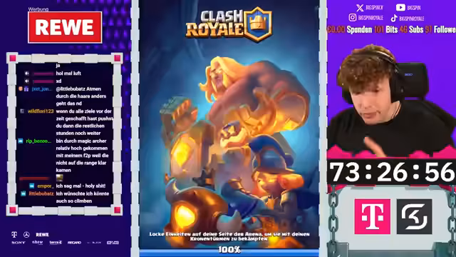 00:00:02Der Streamer beginnt den Tag mit großer Begeisterung und begrüßt sein Team und die Zuschauer. Er stellt das aktuelle Free-to-Play-Projekt vor und zeigt die beeindruckende Kronenzahl von 4.200 innerhalb der ersten 10 Stunden auf dem neuen Account, was auf einen extrem erfolgreichen Start hindeutet. Er kündigt an, das Projekt weiter voranzutreiben und sowohl die Clan-Spiele als auch das Seasonende im Blick zu behalten. Der Fokus liegt darauf, mit einem speziellen Deck, das aus Karten wie Golem, Evolution Valkyrie, Baby Dragon und Vines besteht, zu dominieren und die 7.000 Trophäen-Marke zu erreichen, um neue Features freizuschalten.