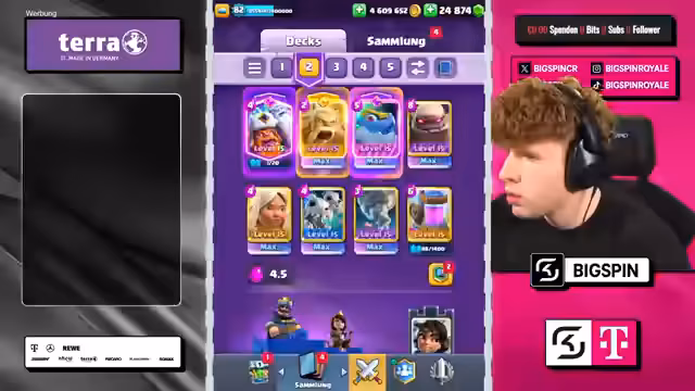 01:24:26Während der Demonstration der besten April-Decks zeigt der Streamer eine Schwäche gegen bestimmte Meta-Kombinationen wie Hog Rider mit Tesla oder Mega Knight. Er kritisiert das 'Braindead-Gameplay' von Gegnern, die Holzfüller spielen, und fühlt sich von Matchups wie Clan-Deck oder Freeze unfauf behandelt. Trotz Siegen mit dem Rock-Deck bleibt er unzufrieden, da er gegen aktuelle Meta-Decks zu verlieren droht, was ihn dazu bringt, Clash Royale als 'cursed' zu bezeichnen.
