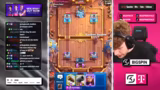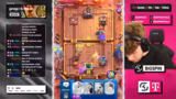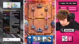00:52:09Nach der turbulenten Hawk-Partie wechselt der Streamer das Thema und präsentiert das Deck, mit dem er auf Platz 74 der Weltrangliste war. Er spielt gegen einen Gegner mit Ghost und Pekka, setzt Berserker und Minions ein, gerät aber durch eine unüberlegte Spielweise mit dem Mega-Ritter in Rückstand. Obwohl er mit dem Ofen eine Rückkehr ins Spiel findet, verliert er das Match und bezeichnet das Mega-Ritter-Deck als 'completely cooked', was seine Frustration über die Matchups zeigt.
