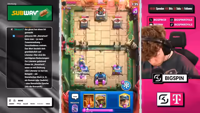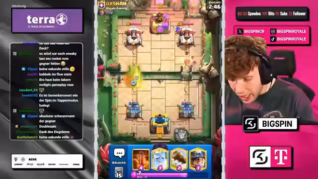 02:25:09Der Stream beginnt mit mehreren verlorenen Matches gegen Ofen und Feuergeist, was zu erheblicher Frustration führt. Das genutzte Bats Goblins Deck wird als ineffektiv empfunden, da wichtige Karten wie Lock nicht gespielt werden können. Der Streamer klagt über das häufige Auftreten der gleichen Gegnerkarten und das Gefühl, keine Kontrolle oder Chance im Spiel zu haben, was zu einem emotional aufgeladenen Spielstil führt.