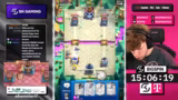 02:15:27Nachdem das Bogies-Project fast abgeschlossen ist, probiert der Streamer ein neues Deck von einem Kollegen namens Mohamed. Es handelt sich um ein Deck mit Ghost, Eis-Golem, Kobolde und Snowball. Dieses Deck wird getestet, um eventuell neue synergistische Effekte für zukünftige Projekte zu finden. Der Test verläuft zunächst unsicher.