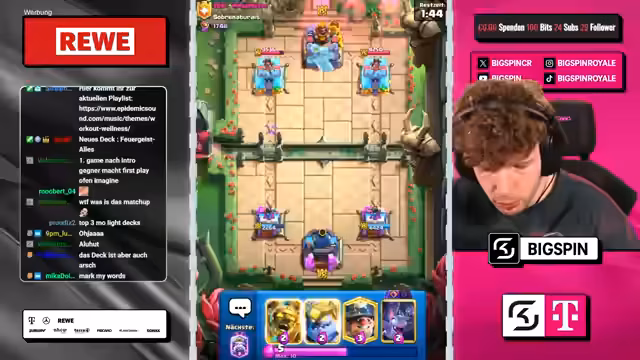 02:17:06Das neue Deck, bestehend aus Ghost, Eis-Golem, Kobolde und Snowball, wird nun aktiv getestet. Es sind erste Bedenken bezüglich Match-ups gegen Decks wie Evo-Ofen vorhanden. Der Streamer beobachtet die Performance genau und stellt fest, dass es nicht schlechter als erwartet funktioniert. Er möchte die Stärken und Schwächen des Decks weiter ausloten.
