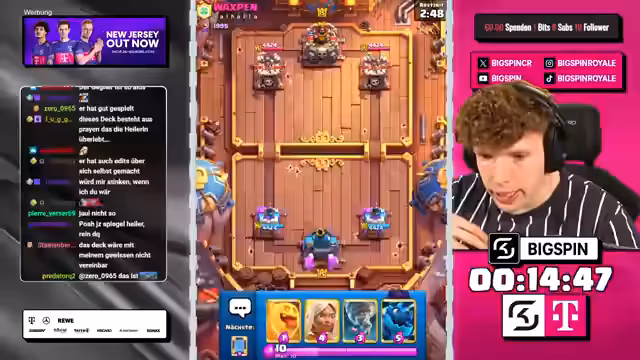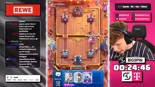 00:20:06Nach dem ersten Sieg spielt der Streamer weiter mit verschiedenen Decks, darunter das Royal Giant Mönch Deck gegen ein Mortar-Deck. Die Spiele sind von strategischen Entscheidungen und taktischen Fehlern geprägt. Der Streamer zeigt sich manchmal verärgert über seine eigenen Fehler, bleibt aber meistens gelassen. Er kommentiert jedes Spiel detailliert und gibt Einblicke in seine Denkweise und seine Strategien.
