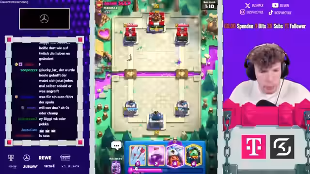00:59:56Nach mehreren Siegen wird die aktuelle Meta des 2vs2-Modus analysiert. Karten wie der 'Evo-Holzfäller' und der 'Golem' werden als sehr stark eingestuft, während der 'Lumberjack' im 2vs2 an Bedeutung verloren hat. Der Streamer erwähnt anstehende Events wie die 'E-Sports Broads' und plant, ab Donnerstag mit vollem Programm wieder zu streamen. Er bittet die Zuschauer um Unterstützung bei der Analyse von Decks, um sich in der Rangliste weiter nach oben zu arbeiten.