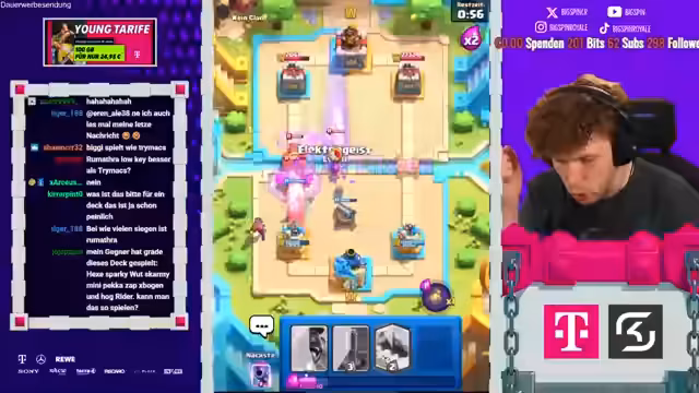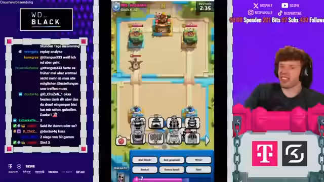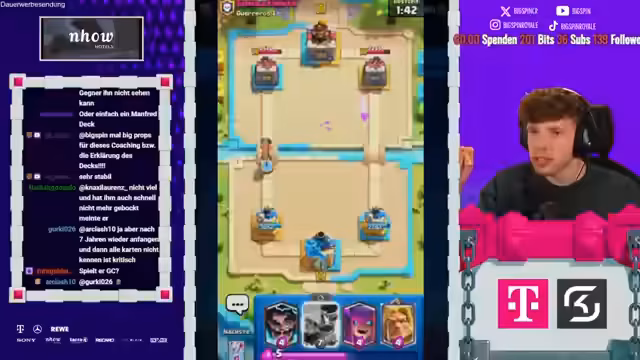 06:20:39Im Fokus des Streams steht eine detaillierte Gameplay-Analyse, insbesondere eines Spiels gegen ein X-Bogen-Deck. Der Streamer gibt kontinuierliche taktische Ratschläge und kritisiert spielerische Fehler, wie übermäßiges Overcommitting von Elixir und ineffektive Platzierung von Karten wie der Crackerin und Boss Banditin. Die Analyse konzentriert sich auf die defensive Verteidigung, das Cycling von Karten und das Verständnis der Gegnerzüge. Romatra, der Klient, wird ermutigt, aus Fehlern zu lernen und seine Spielweise zu verbessern, auch wenn er unter dem Druck der Matches leidet und frustriert wirkt.