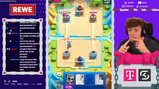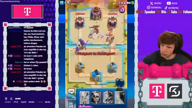 Es wurde ein Coaching für den Push auf 8000 Trophäen im Clash Royale gestreamt. Es wurde ein neues X-Bogen-Deck vorgestellt. Es wurden defensive und offensive Strategien erklärt. Es wurden spezifische Karten wie Hexenmutter und Banditin analysiert. Es wurden Fehler in praktischen Spielen korrigiert und Verbesserungspotenziale aufgezeigt.