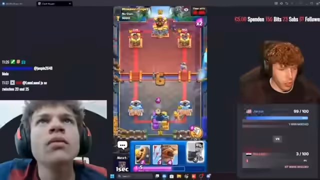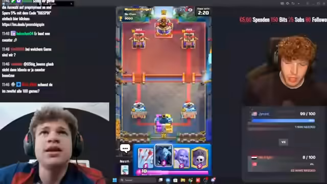 00:11:33Während der Challenge zeigt der Streamer auch unkonventionelle Spielzüge wie den Einsatz von Evo-Bogenschützen und X-Bogen. Trotz einiger Verluste und missglückter Züge wie einem 'Mistklick', der ihn in eine schwierige Position brachte, gelingen ihm auch beeindruckende Siege. Die Spiele zeugen von hoher Spielintensität und teils unfairen Matchups, die der Streamer mit seiner Kreativität und Erfahrung meistert.