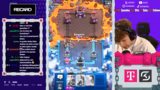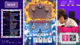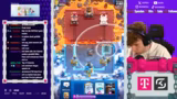 00:01:57Der Streamer coacht den Spieler live durch mehrere Matches in der Grand Challenge. Es wird eine genaue Strategie für den Eröffnungszug vorgegeben: Golem hinten spielen, Holzfäller als Brücke und danach Nachthexen positionieren. Wichtig ist das Warten auf den Gegner-Spell, um mit dem Klonzauber den Ballon für den Push zu kopieren und den Turm anzugreifen. Der Fokus liegt darauf, ohne viel nachzudenken zu spielen und auf den jeweiligen Zug des Gegners zu reagieren, um den coinflippigen Charakter des Decks zu maximieren.