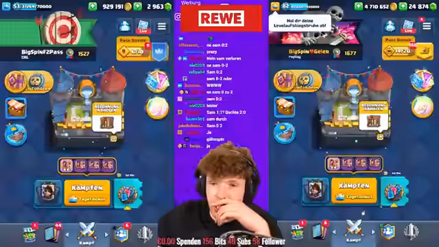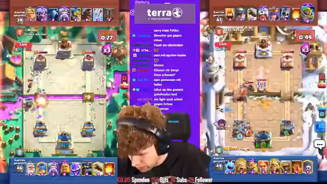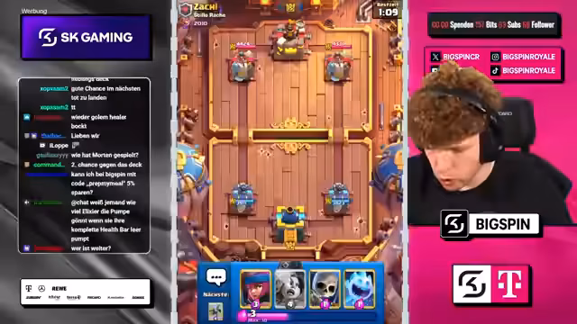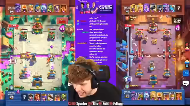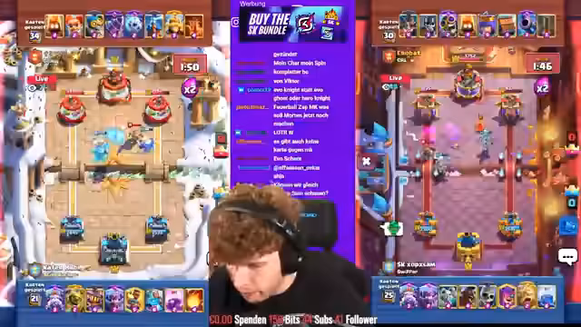 00:52:08Die K.o.-Runde beginnt mit deutschen Spielern wie Sosa, Sam, Faust und Morten, die alle gegen starke Gegner antreten. Besonders spannend ist die Partie zwischen Adnan und Vorkant, wo Adnan nach einem frühen Rückstand noch ins Spiel kommt. Währenddessen diskutiert der Streamer über das Giant Skelly Deck in Clash Royale, das er für unausbalanciert hält und entweder extrem stark oder völlig irrelevant sei. Die Duelle sind äußerst knapp und viele Matches enden unentschieden, was für eine sehr knappe und unvorhersehbare Situation in den Gruppen sorgt.