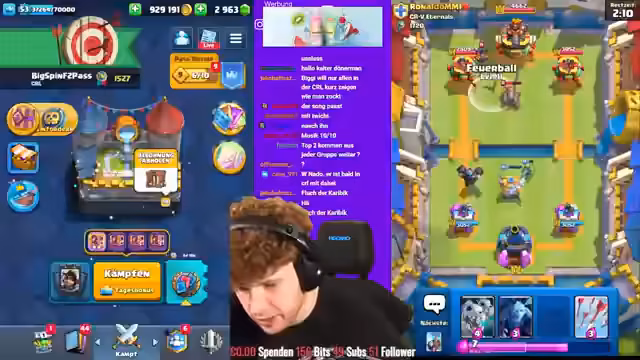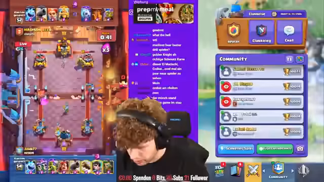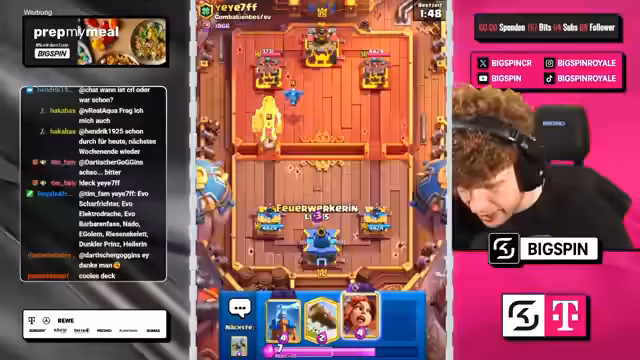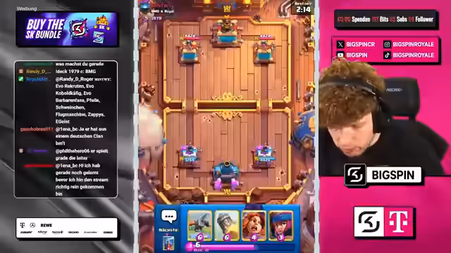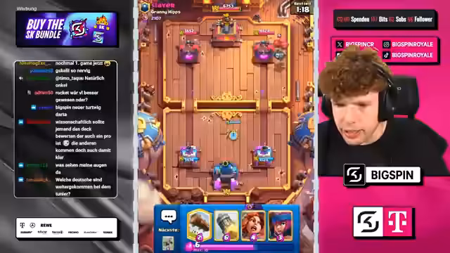 04:19:44Der Streamer hat es mit einem schwierigen Matchup zu tun, wo er gegen ein Riesenskelett-Deck antritt. Er versucht, mit Tesla und Eisgeist zu kontern, hat aber Schwierigkeiten, Schaden zu machen und liegt im Nachteil. Der Gegner setzt Dark Prince und andere Karten ein, während der Streamer versucht, mit Raketen zu kontern. Es ist ein anspruchsvolles Spiel, bei dem der Streamer letztendlich verliert, weil er keine vernünftige Antwort mehr hat.