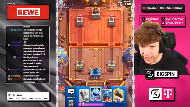 04:06:31Der Streamer befindet sich in einer schwierigen Verteidigungssituation gegen einen Gegner, der aktiv an der Brücke spammt. Trotzdem gelingt es ihm, sich zu verteidigen und bleibt im Spiel. Der Gegner setzt verschiedene Karten wie Weins und Cracker ein, während der Streamer versucht, mit Tesla und anderen Karten zu kontern. Es ist ein aufregendes Duell, bei dem der Streamer knapp am Verlust vorbeischrammt, aber schließlich überlebt.