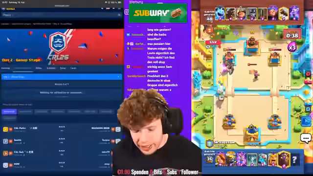 00:00:00Der Stream beginnt mit einer ausgelassenen Begrüßung des Streamers bigspincr, der einen lang erwarteten Stream ankündigt. Das Hauptthema ist das CLTag 2 Event, bei dem die Top 64 Spieler um die Qualifikation für das Monthly Final kämpfen. Fünf deutsche Spieler - Sam, Faust, Morten, Sosa und Adnan - haben es bereits geschafft und werden nun in Gruppenphasen mit je acht Spielern beobachtet. Der Streamer gibt einen Überblick über das Format und die deutschen Teilnehmer, wobei er sich besonders auf die Leistung von Faust konzentriert, der als einziger Spieler gestern gegen Molait gewinnen konnte.
