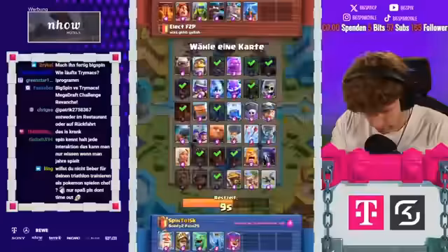 01:49:35In einer anspruchsvollen Spielsituation analysiert der Streamer das Potenzial verschiedener Truppen und Zauber. Er erwägt den Einsatz von Elektro-Geist gegen Schweinereiter und Log, und diskutiert den Wert von Karten wie der Goblin-Maschine, die als starker Allrounder eingestuft wird. Er zeigt eine tiefe strategische Auseinandersetzung mit dem Spiel, wobei er versuche, die Win-Condition zu finden und den Gegner durch cleveres Karteneinspiel zu überrumpeln.