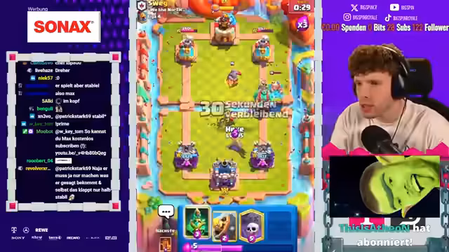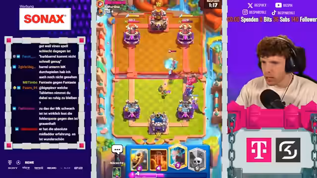 01:47:22Zu Beginn des analysierten Gameplay-Ausschnitts wird ein intensives Clash Royale-Duel gespielt, das vom Streamer eingehend kommentiert wird. Der Fokus liegt auf dem F2P-Friedhof-Deck, dessen Stärken und Schwächen diskutiert werden. Der Streamer betont die hohe Durchschlagskraft des Decks durch teure Karten wie die Hexe, kritisiert aber gleichzeitig die Tendenz zu Overcommitments, was zu Elixier-Nachteilen führen kann. Entscheidend ist die Hexe als zyklische Karte, die konstanten Schaden anrichtet, während der Friedhof als permanente Bedrofung fungiert.
