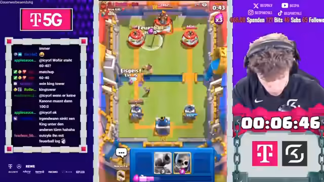 04:55:53Der Streamer kommentiert, dass sein Gegner nichts gegen Eisburg hatte und am Ende panisch wurde, was bei X-Bogen-Spielern oft zu Halluzinationen führt. Er spielt gegen einen Goblinischen Barrel-Gegner und bemerkt, dass er ein 3,5 Elixier Wasserfall Zeikel spielt, was zum Deck gehört. Der nächste Gegner beweist mit seiner skleatonischen Armee, dass er möglicherweise keine Antwort auf den externischen Bogen hat. Der Gegner hat einen Feurigen, Feuerwehr und Pfeile, was den Streamer verwundert. Der Ritter wird als Mitarbeiter des Monats ausgezeichnet, da er das Spiel vorangebracht hat. Die Goblinische Gang kommt, und der Streamer performt einen Spielzug, um gewisse Performance-Dinge zu klären. Der Gegner wirft sieben Elixier auf seinen Ritter, aber der Streamer betont, dass sein Ritter der "Code Big Spin Ritter" ist. Er setzt den Tesla ein, was nicht unbedingt der absolute geistige Höhenflug war, aber ausreichend ist. Der Streamer muss gediegen runterclashen und setzt den Ritterlichen ein. Der Gegner hat Nado und Feuerball, was der Streamer lobt.