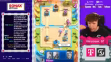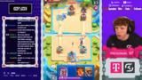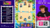02:24:13Nachdem der Streamer die 5000-Trophäen-Marke erreicht hat, startet er die erste Grand Challenge, um seinen ersten Champion freizuschalten. Er stellt fest, dass die Gegner in der Grand Challenge trotz der erwarteten Stärke unerwartet einfach zu bezwingen sind. Nachdem er neun Siege in der Challenge gesammelt hat, werden die Belohnungen signifikant besser. Mit dem zehnten Sieg schaltet er den Champion frei. Der gezogene Champion ist der Skelly King, der im Vergleich zum alternativen Golden Knight für die bevorzugten Decks besser geeignet ist. Dieser Erfolg stellt einen erheblichen Vorteil für das Free-to-Play-Projekt dar, da Champions in den vorherigen Truhen sehr selten waren.