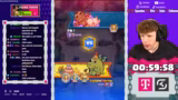 01:16:10Nach einem klaren Sieg zu 7 zu 2 scheint der Streamer im Flow. Er gewinnt ein Game souverän, da sein Deck mit Karten wie Bush und Jill gut carryt. Kurze Zeit später verliert er jedoch ein knappes Game gegen Skillmaster, dessen Prince-Bubble-Deck ihm Probleme bereitet. Das Spiel endet unglücklich, der Streamer kann es nicht halten und ist frustriert über den Gegner, der angeblich nicht richtig spielt.